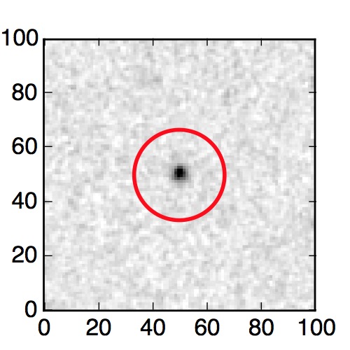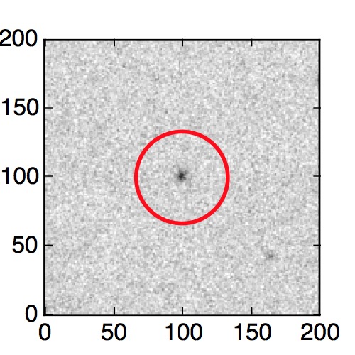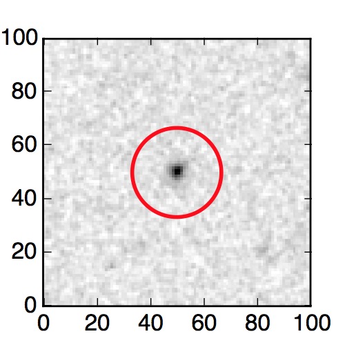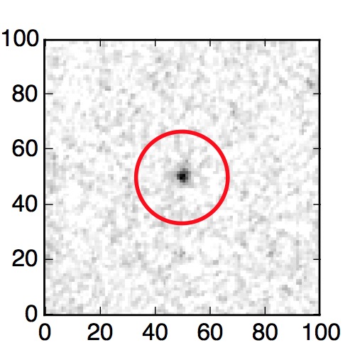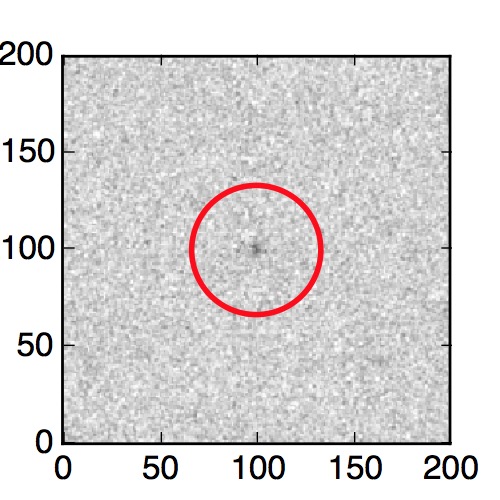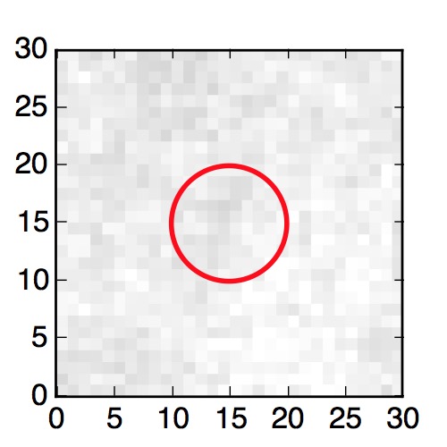 The red circle in the various panels is 1" in radius. The images are 6"x6".