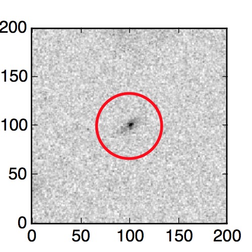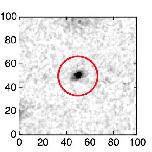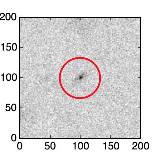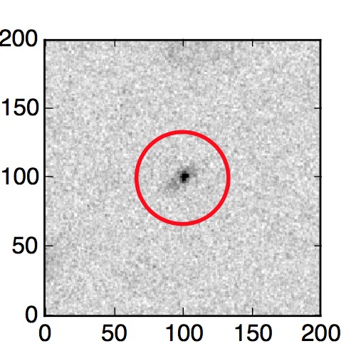 The red circle in the various panels is 1" in radius. The images are 6"x6".