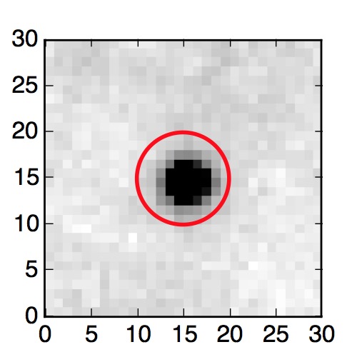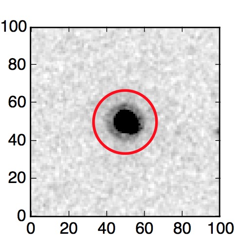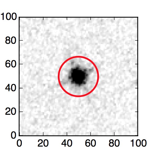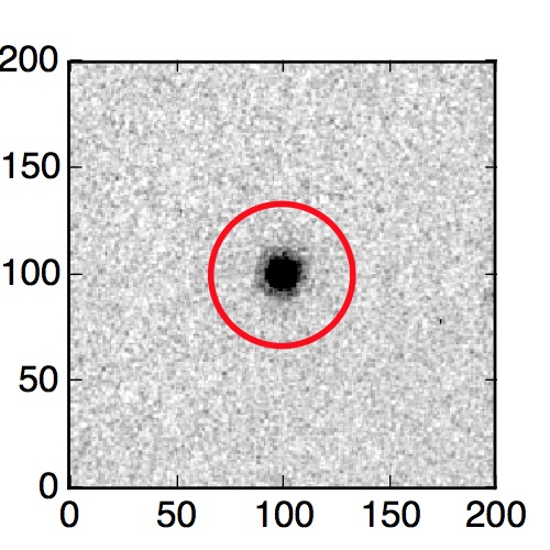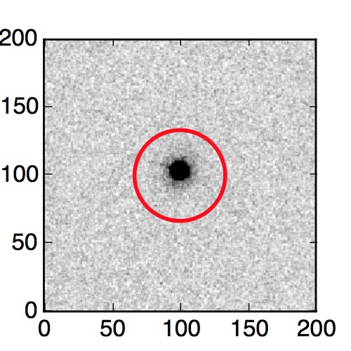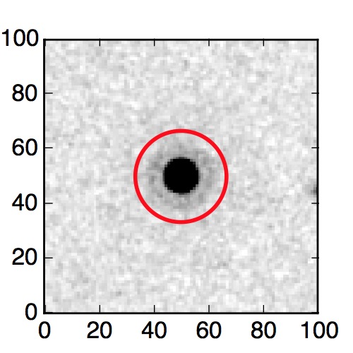 The red circle in the various panels is 1" in radius. The images are 6"x6".