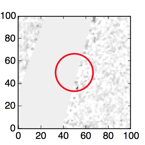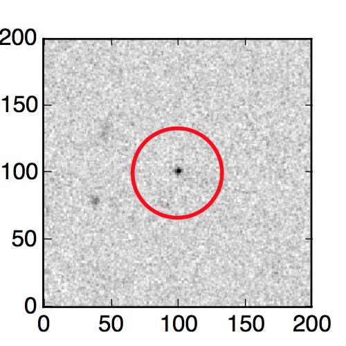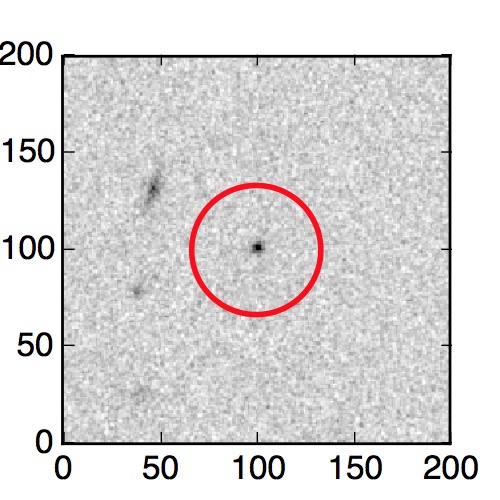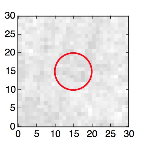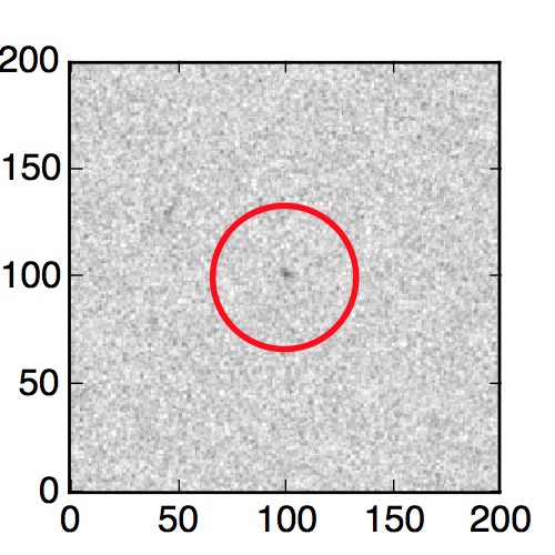 The red circle in the various panels is 1" in radius. The images are 6"x6".