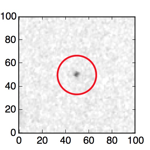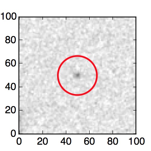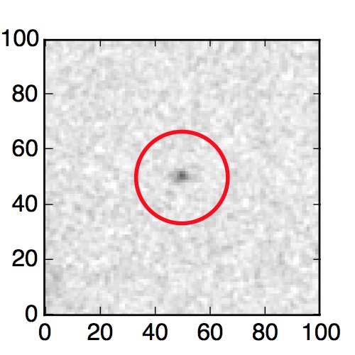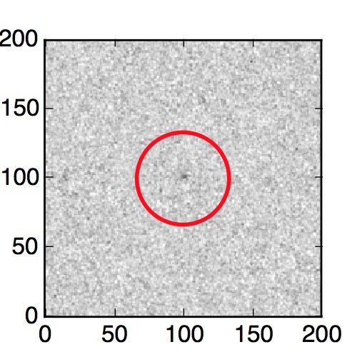 The red circle in the various panels is 1" in radius. The images are 6"x6".