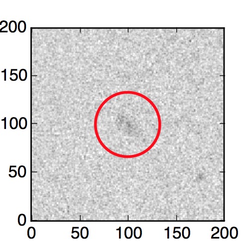 The red circle in the various panels is 1" in radius. The images are 6"x6".