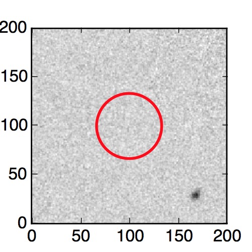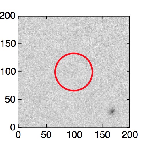 The red circle in the various panels is 1" in radius. The images are 6"x6".