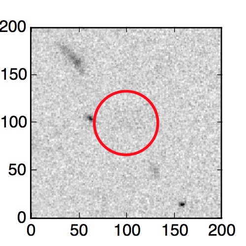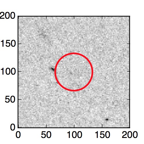 The red circle in the various panels is 1" in radius. The images are 6"x6".