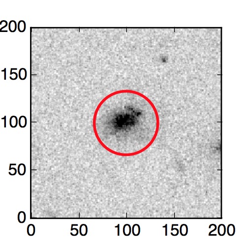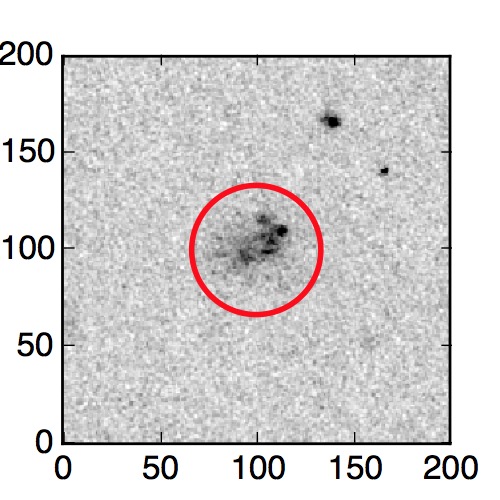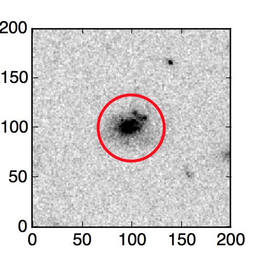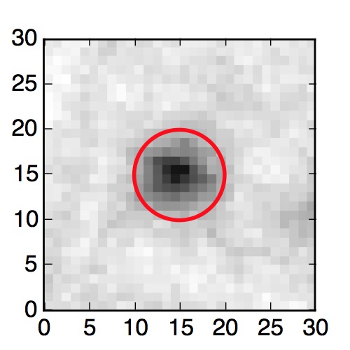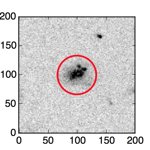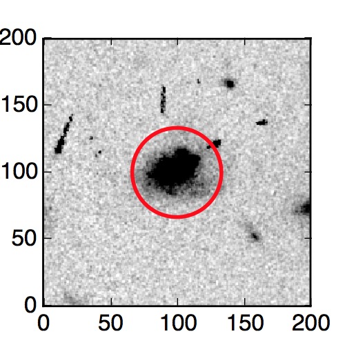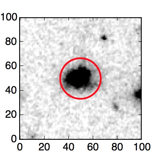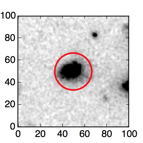 The red circle in the various panels is 1" in radius. The images are 6"x6".