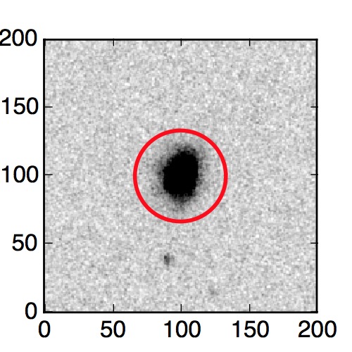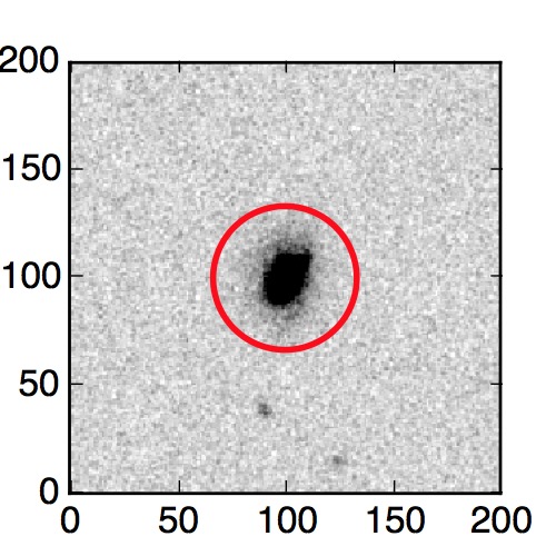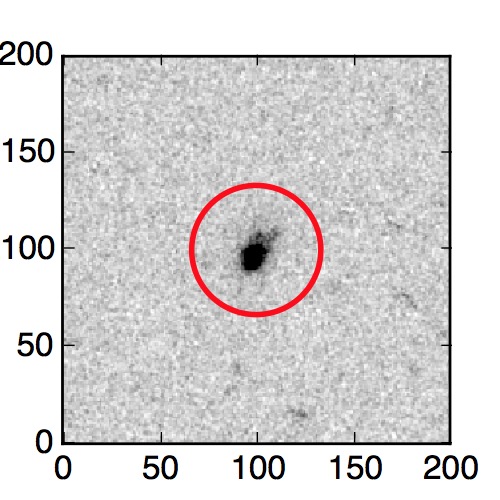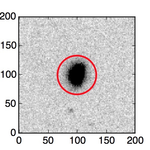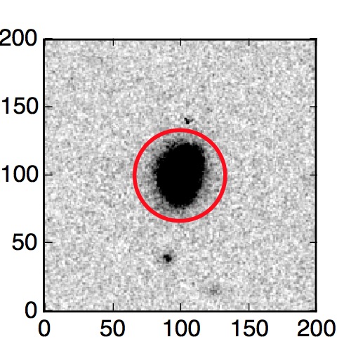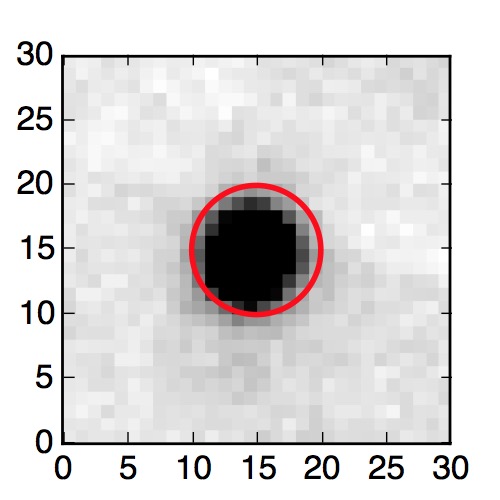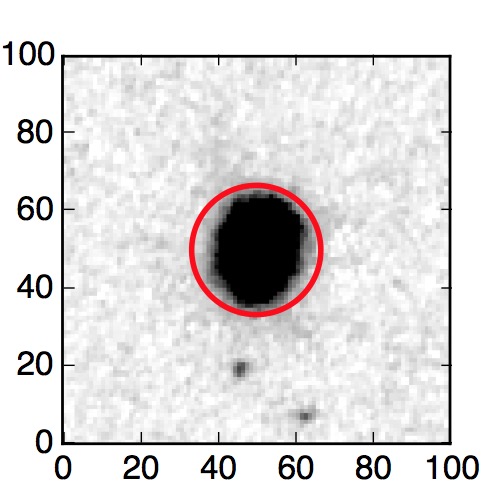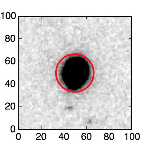 The red circle in the various panels is 1" in radius. The images are 6"x6".