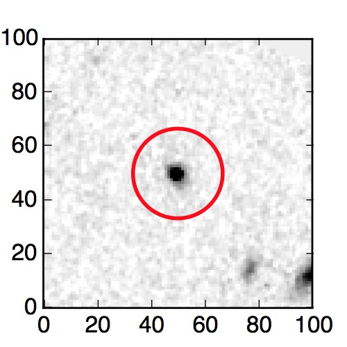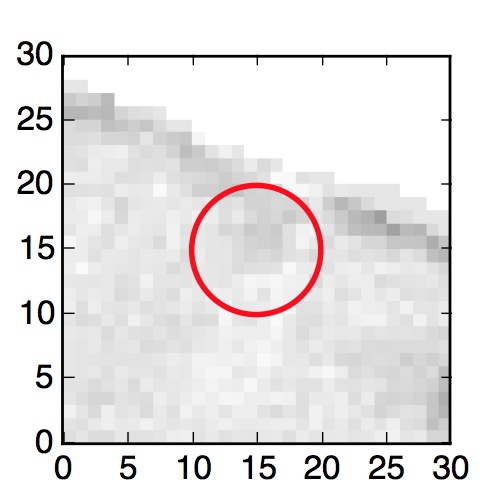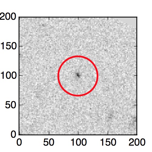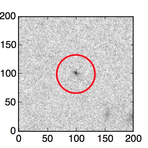 The red circle in the various panels is 1" in radius. The images are 6"x6".