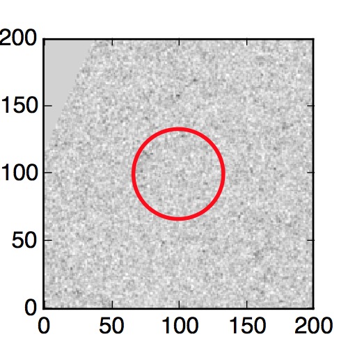The red circle in the various panels is 1" in radius. The images are 6"x6".