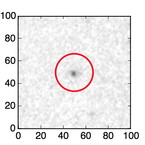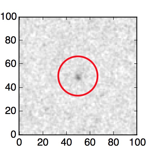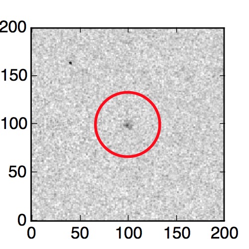The red circle in the various panels is 1" in radius. The images are 6"x6".