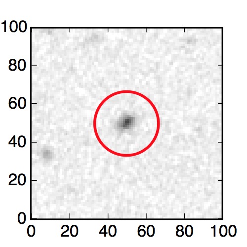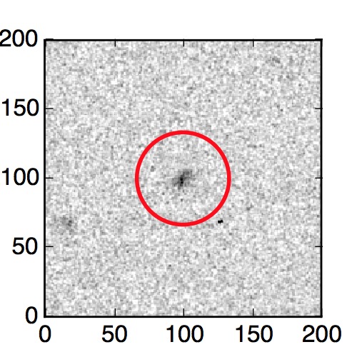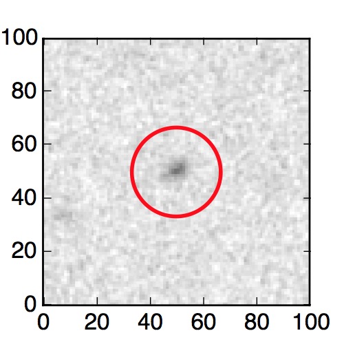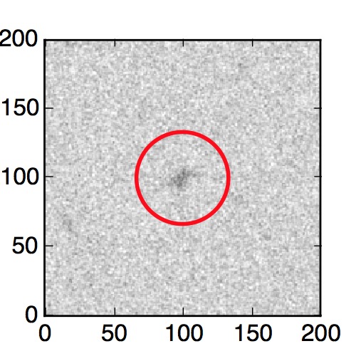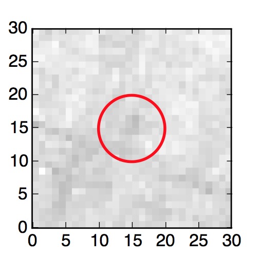 The red circle in the various panels is 1" in radius. The images are 6"x6".