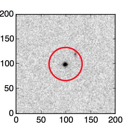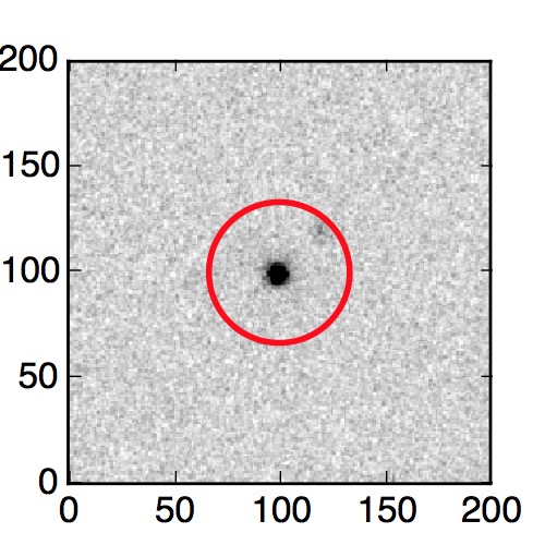 The red circle in the various panels is 1" in radius. The images are 6"x6".