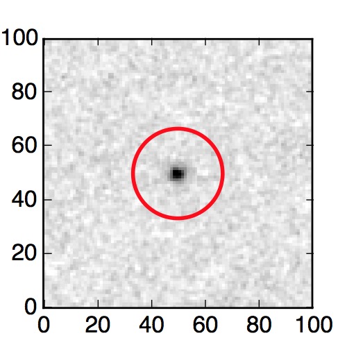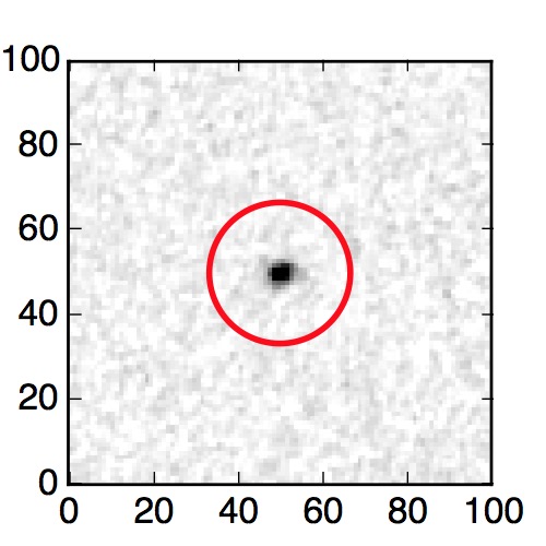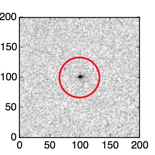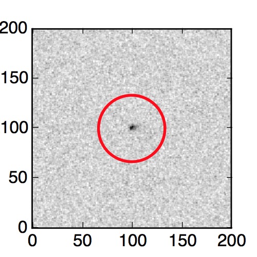 The red circle in the various panels is 1" in radius. The images are 6"x6".