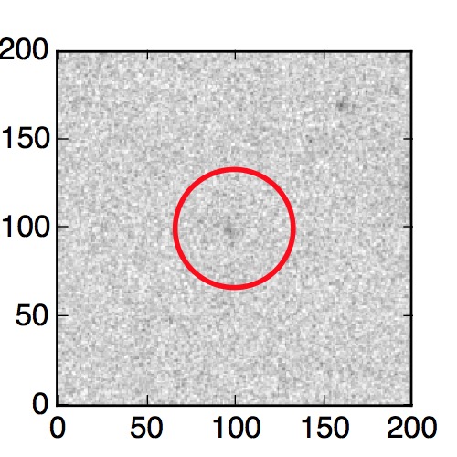 The red circle in the various panels is 1" in radius. The images are 6"x6".