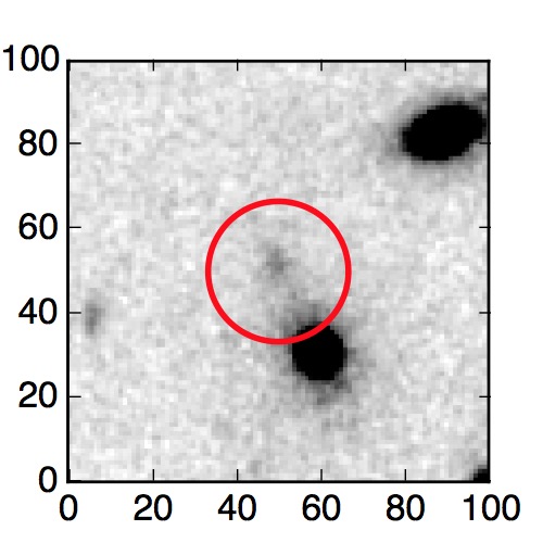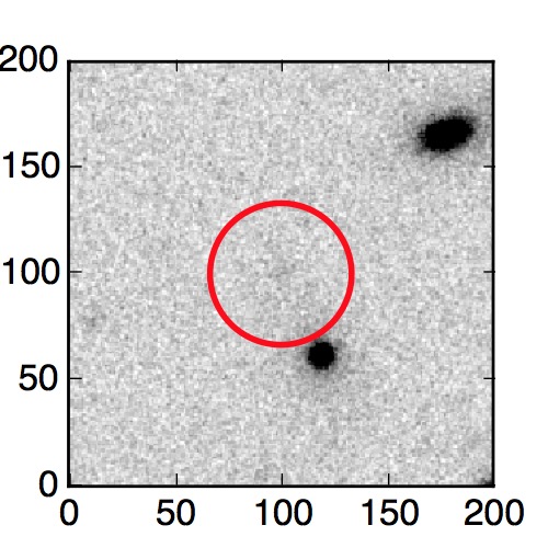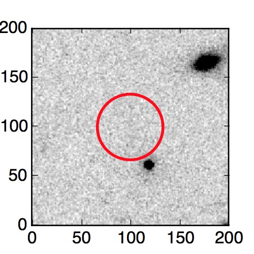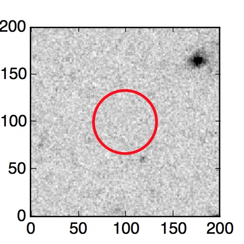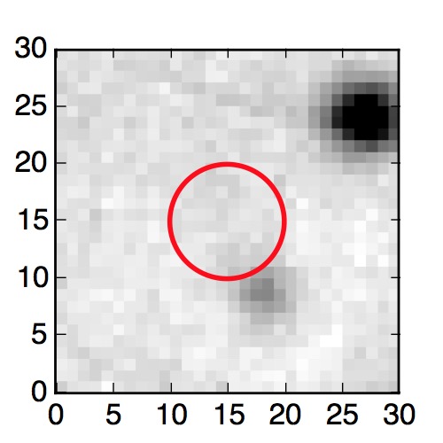 The red circle in the various panels is 1" in radius. The images are 6"x6".