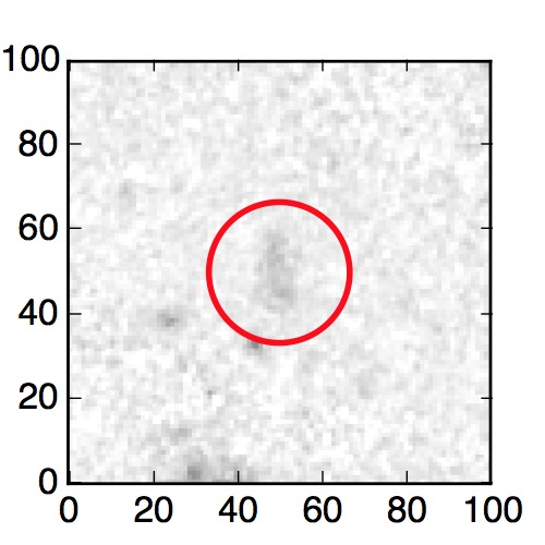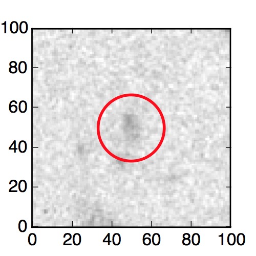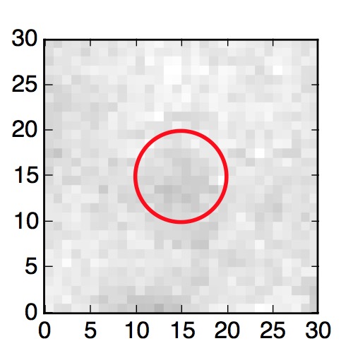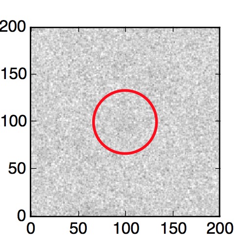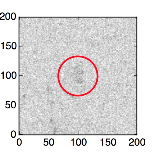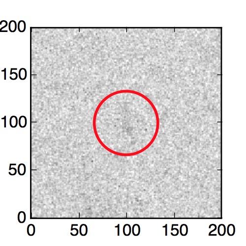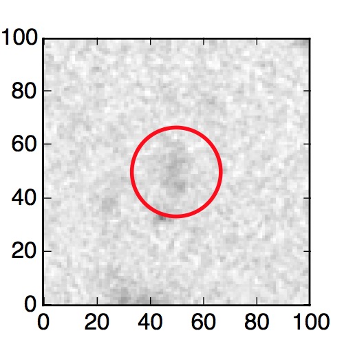 The red circle in the various panels is 1" in radius. The images are 6"x6".