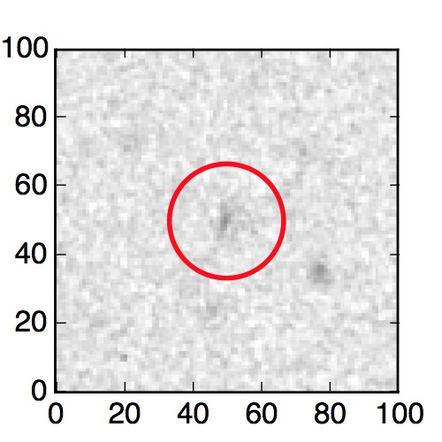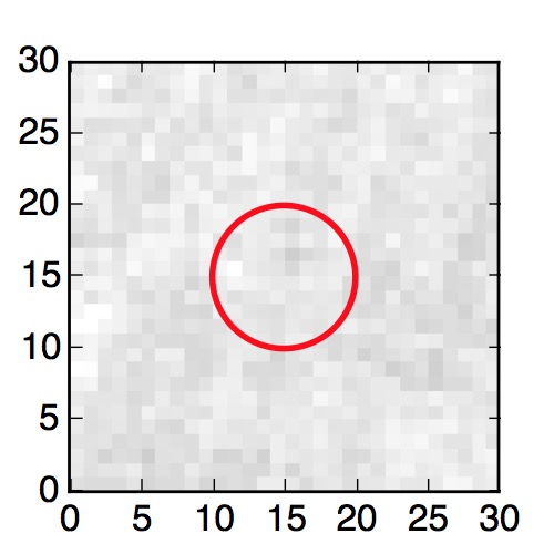 The red circle in the various panels is 1" in radius. The images are 6"x6".