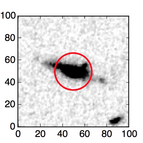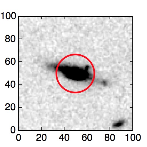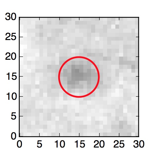 The red circle in the various panels is 1" in radius. The images are 6"x6".