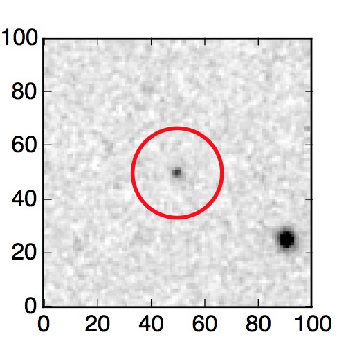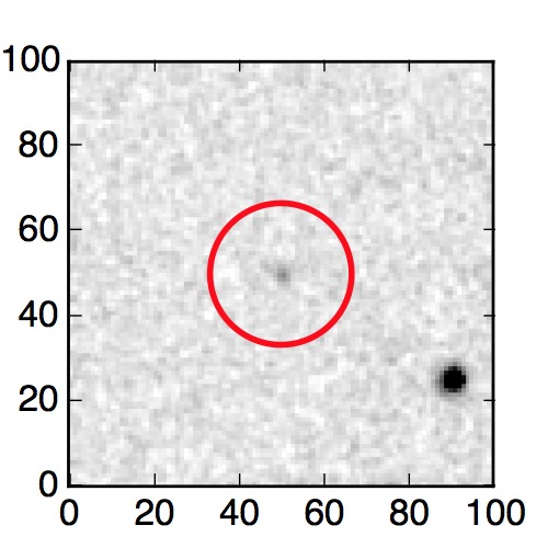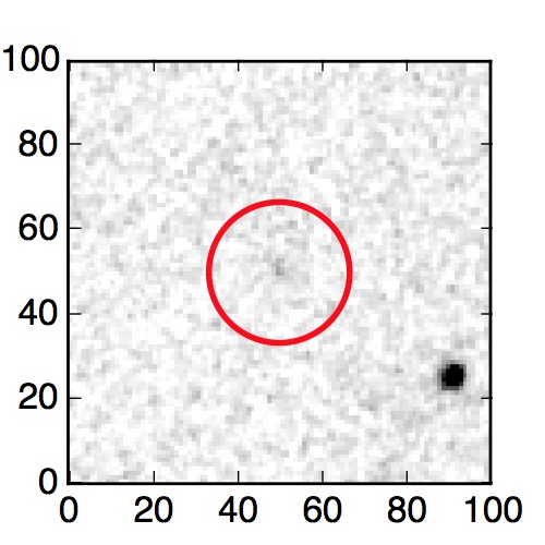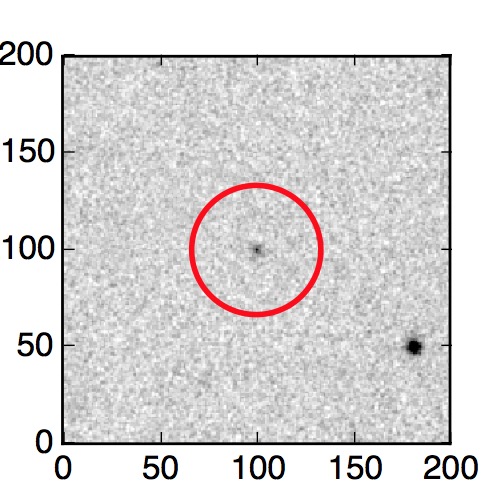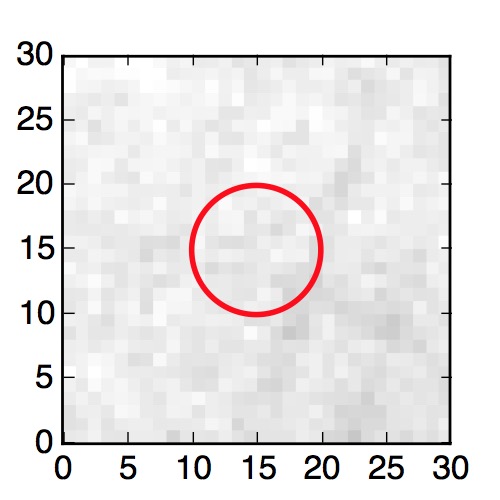 The red circle in the various panels is 1" in radius. The images are 6"x6".