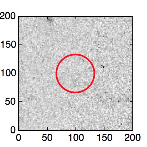 The red circle in the various panels is 1" in radius. The images are 6"x6".