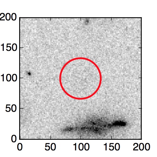 The red circle in the various panels is 1" in radius. The images are 6"x6".