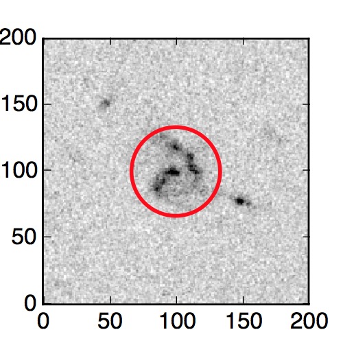 The red circle in the various panels is 1" in radius. The images are 6"x6".