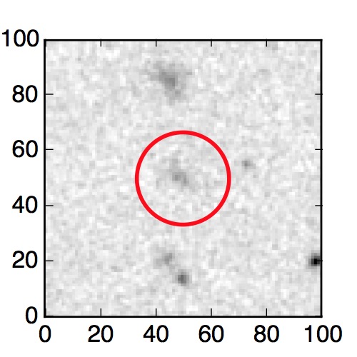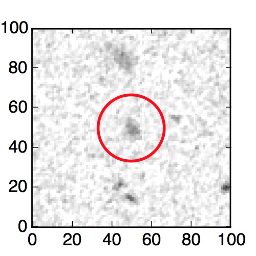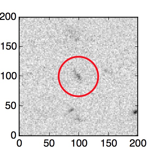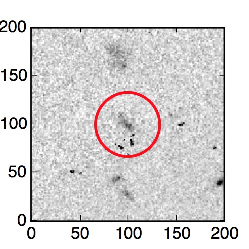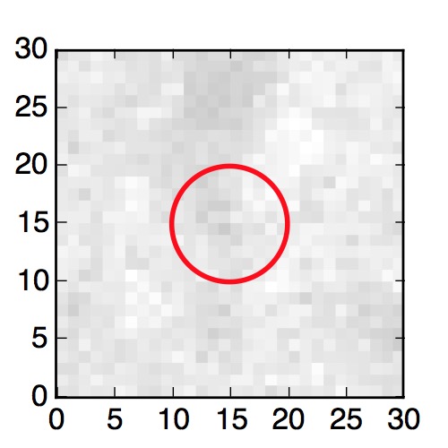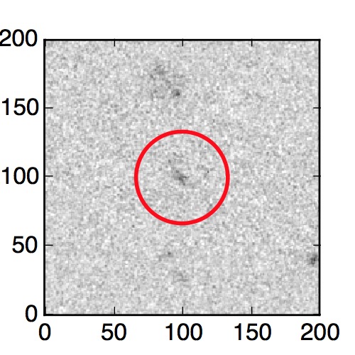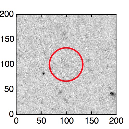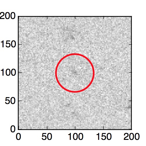 The red circle in the various panels is 1" in radius. The images are 6"x6".