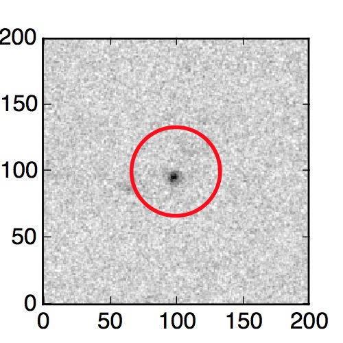 The red circle in the various panels is 1" in radius. The images are 6"x6".