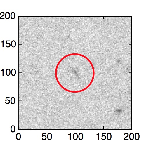 The red circle in the various panels is 1" in radius. The images are 6"x6".