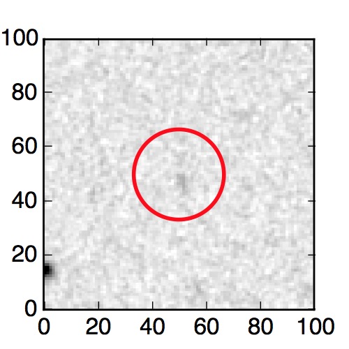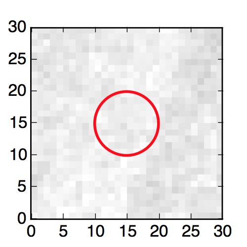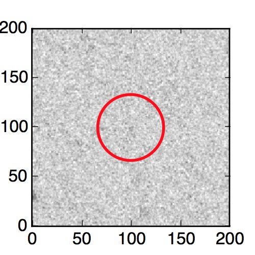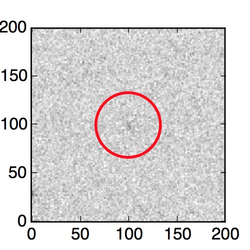 The red circle in the various panels is 1" in radius. The images are 6"x6".