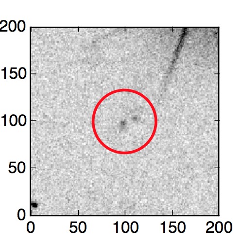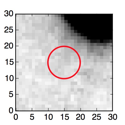 The red circle in the various panels is 1" in radius. The images are 6"x6".