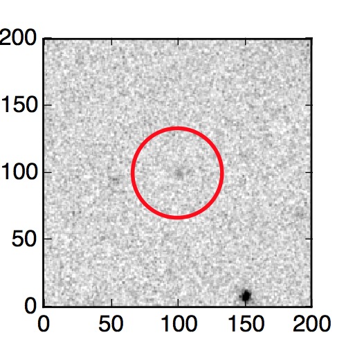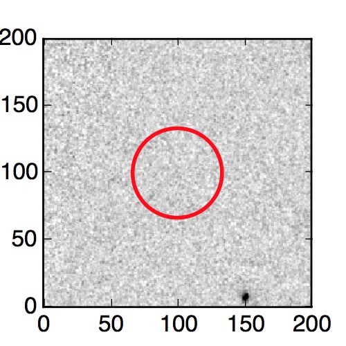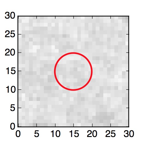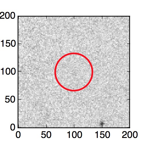 The red circle in the various panels is 1" in radius. The images are 6"x6".