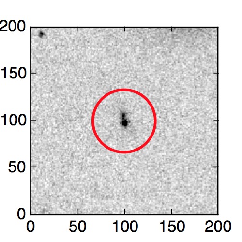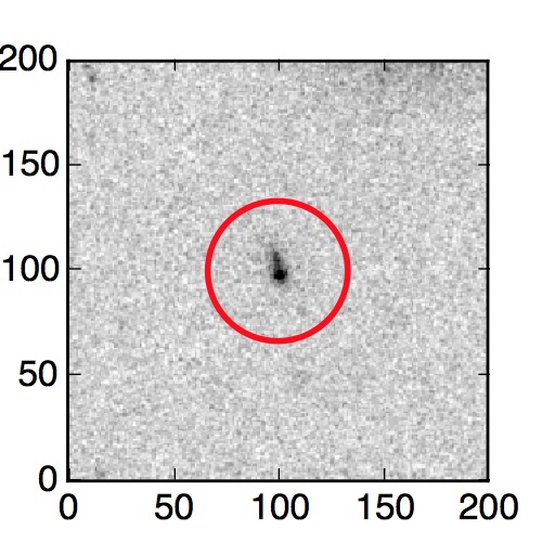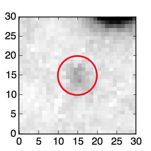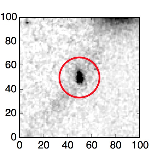 The red circle in the various panels is 1" in radius. The images are 6"x6".