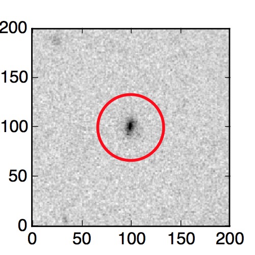 The red circle in the various panels is 1" in radius. The images are 6"x6".