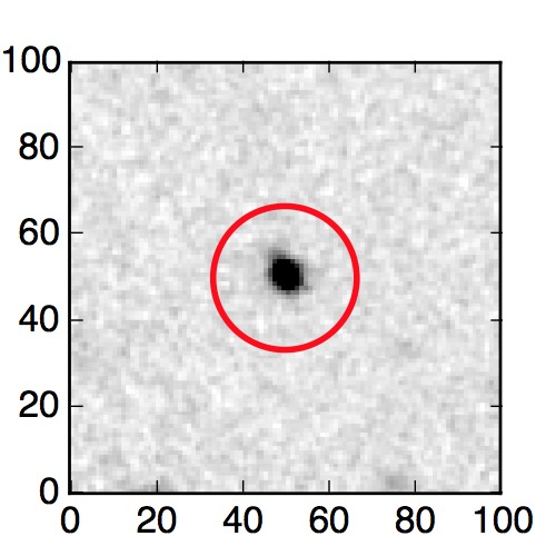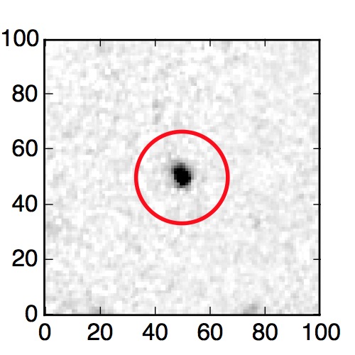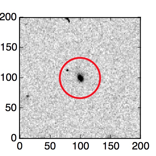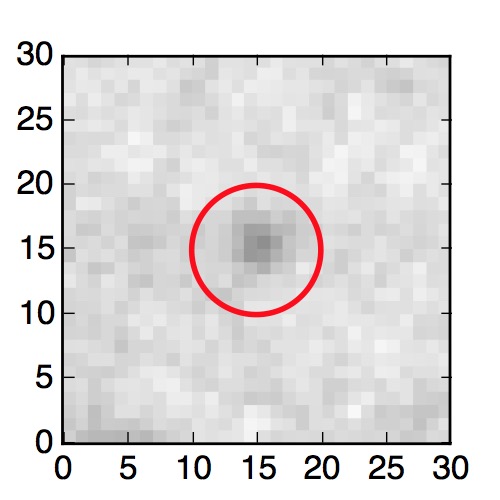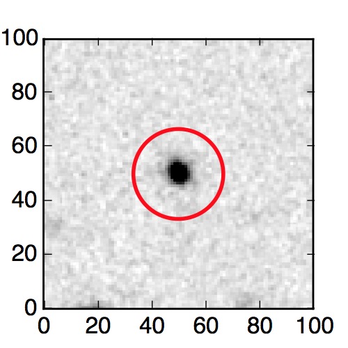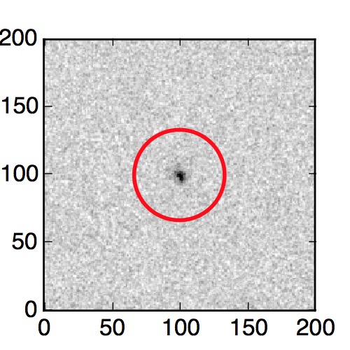 The red circle in the various panels is 1" in radius. The images are 6"x6".