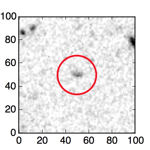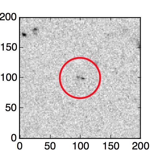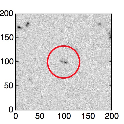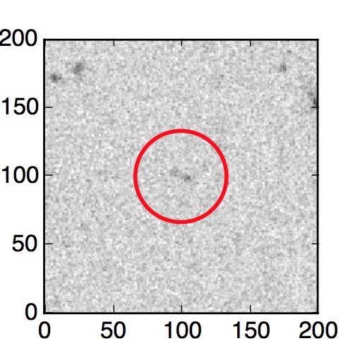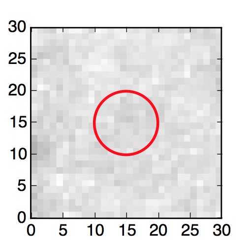 The red circle in the various panels is 1" in radius. The images are 6"x6".