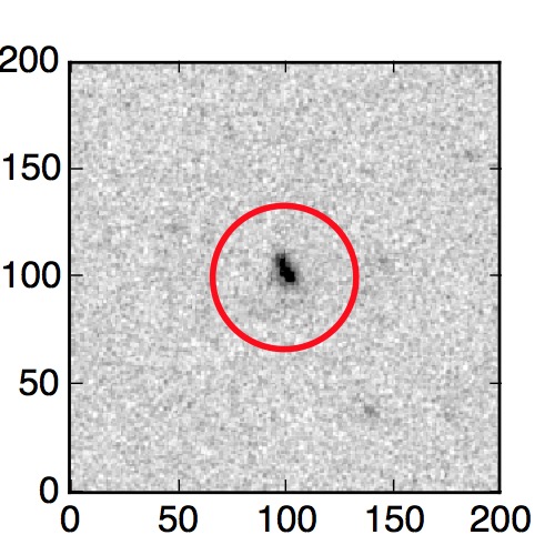 The red circle in the various panels is 1" in radius. The images are 6"x6".