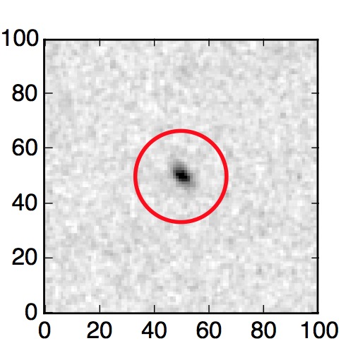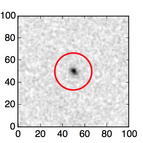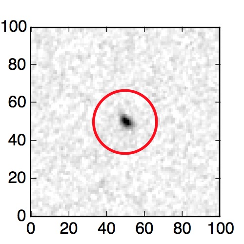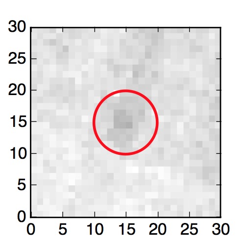 The red circle in the various panels is 1" in radius. The images are 6"x6".