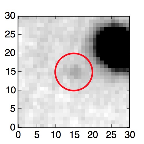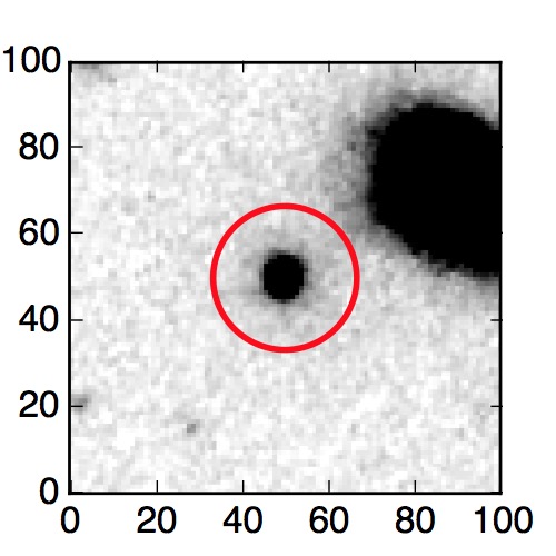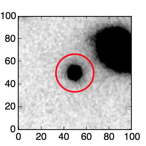 The red circle in the various panels is 1" in radius. The images are 6"x6".