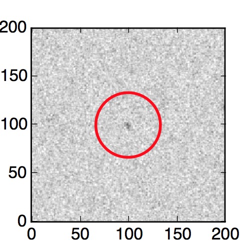 The red circle in the various panels is 1" in radius. The images are 6"x6".
