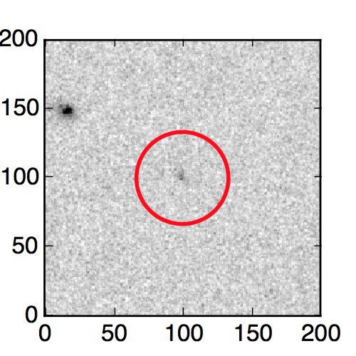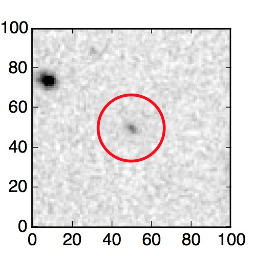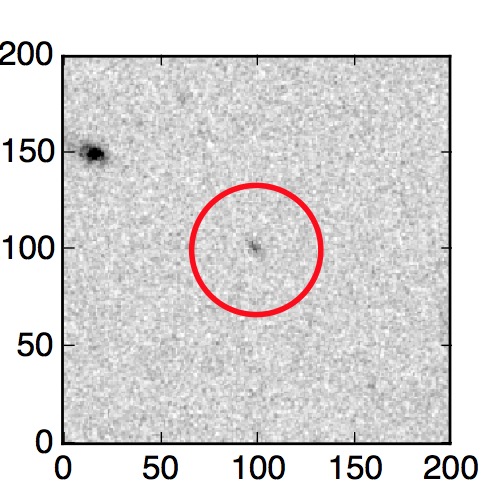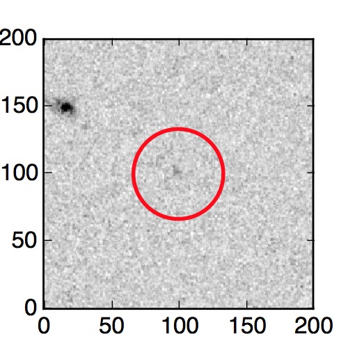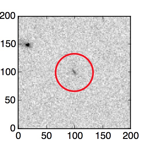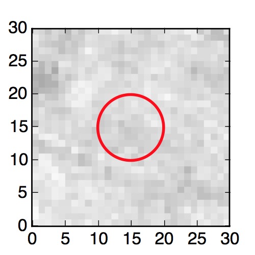 The red circle in the various panels is 1" in radius. The images are 6"x6".