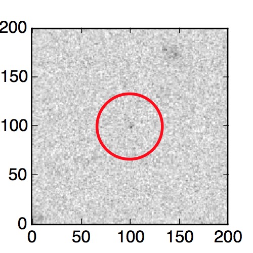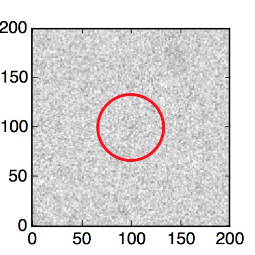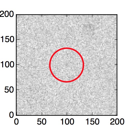 The red circle in the various panels is 1" in radius. The images are 6"x6".