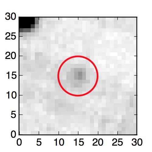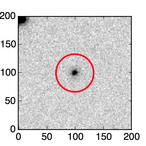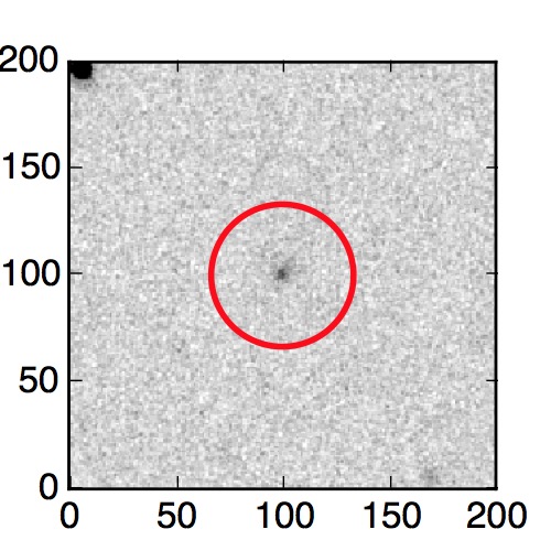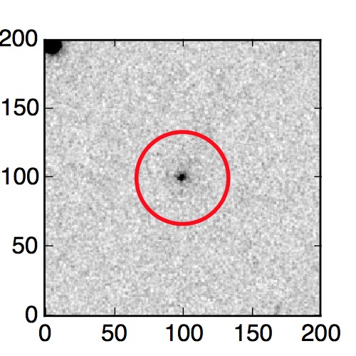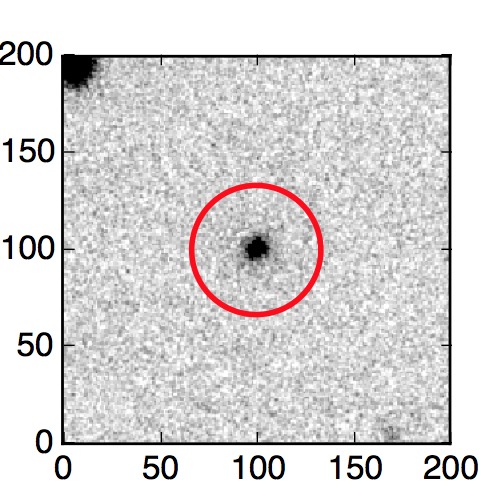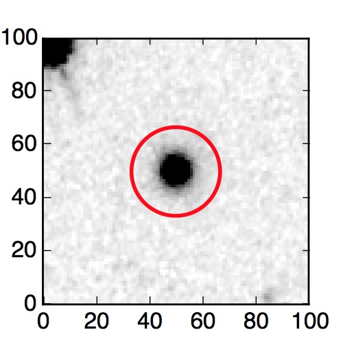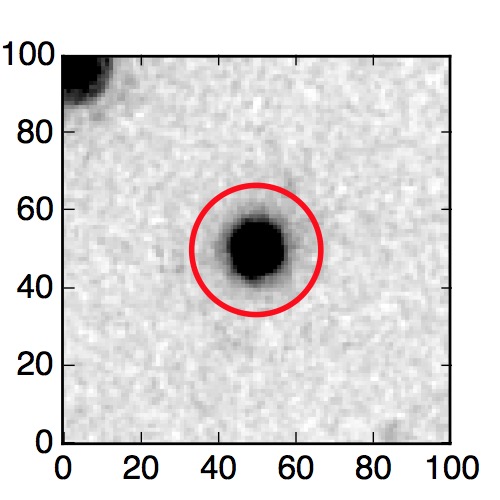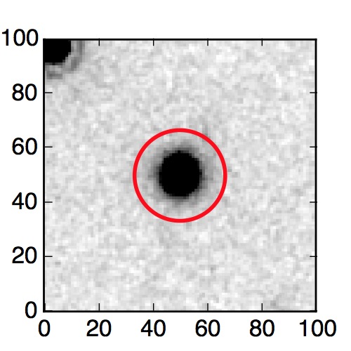 The red circle in the various panels is 1" in radius. The images are 6"x6".