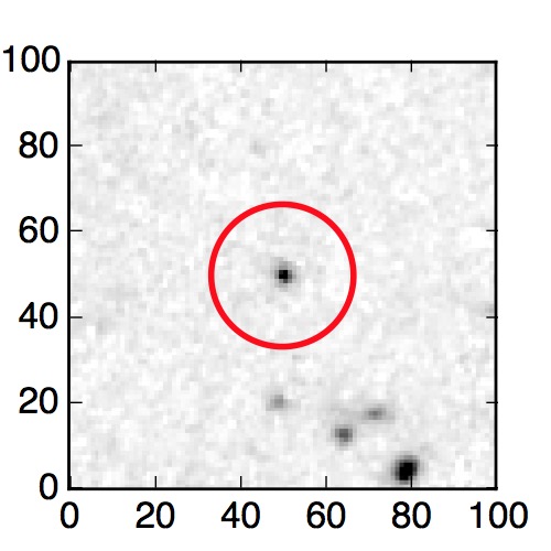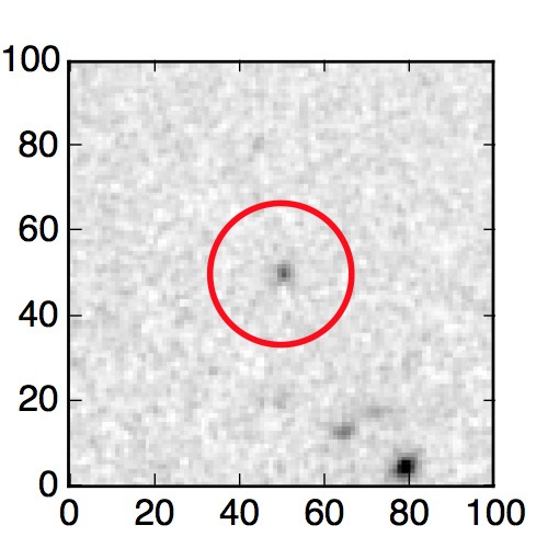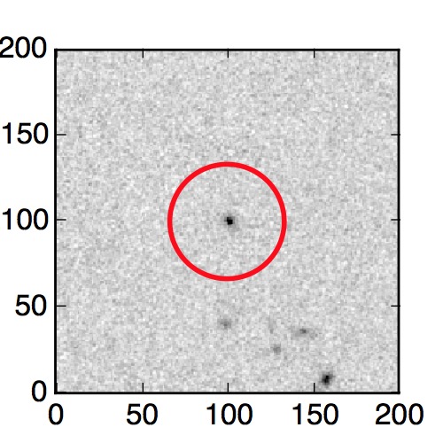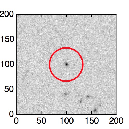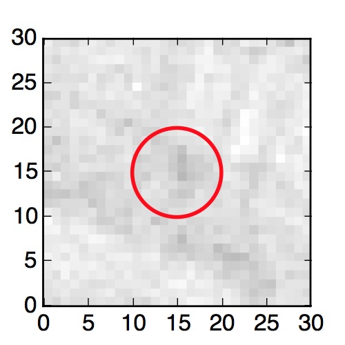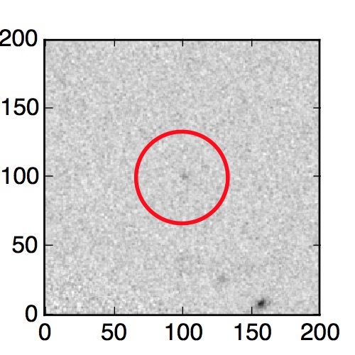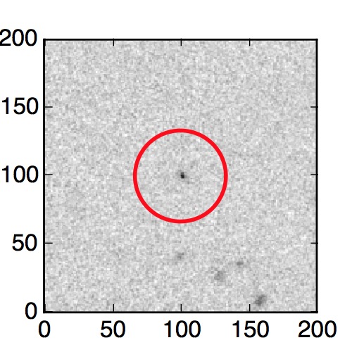 The red circle in the various panels is 1" in radius. The images are 6"x6".