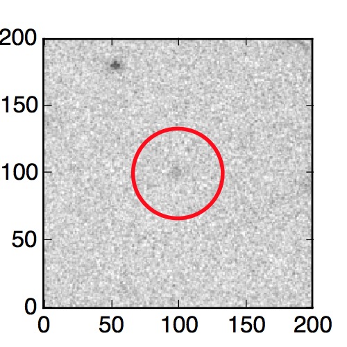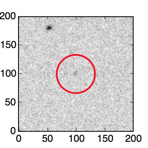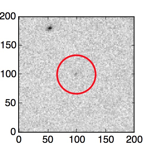 The red circle in the various panels is 1" in radius. The images are 6"x6".