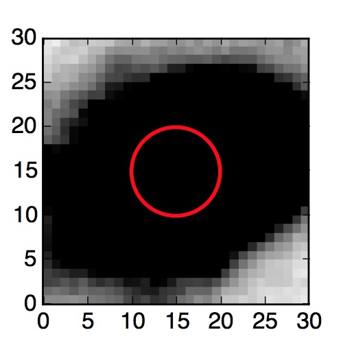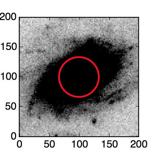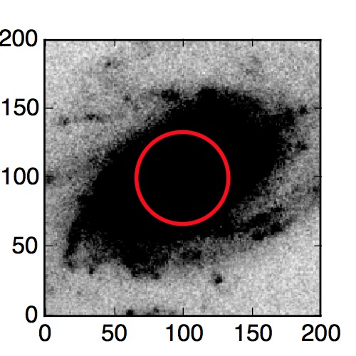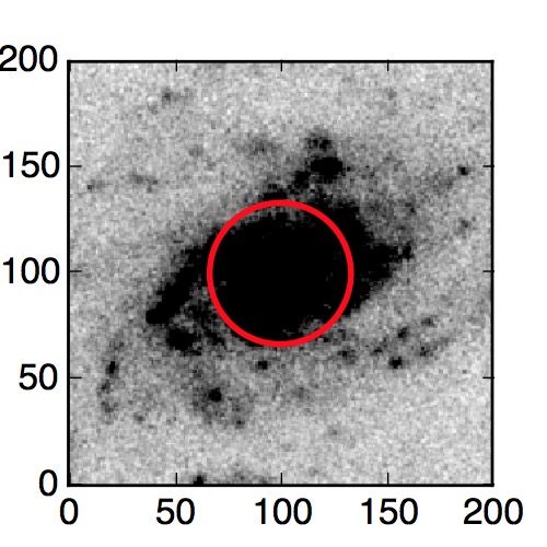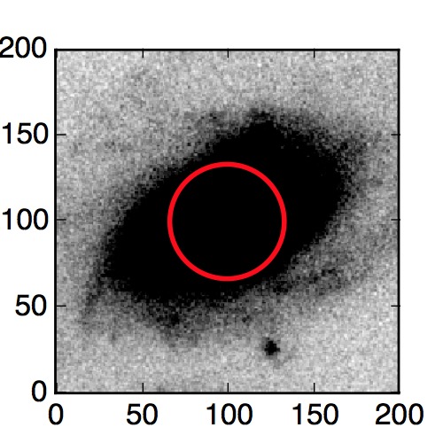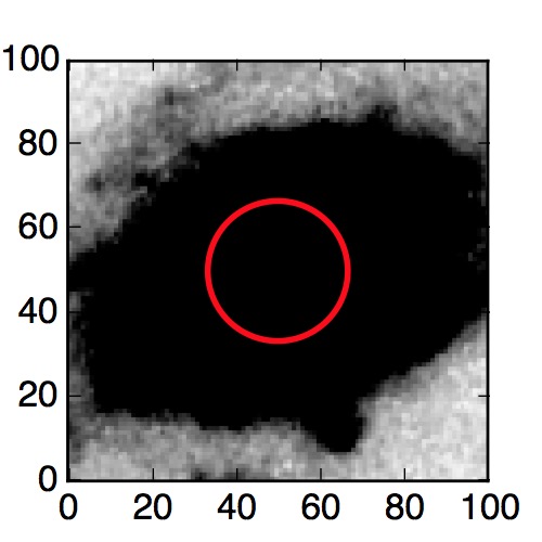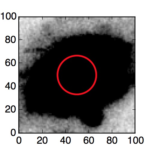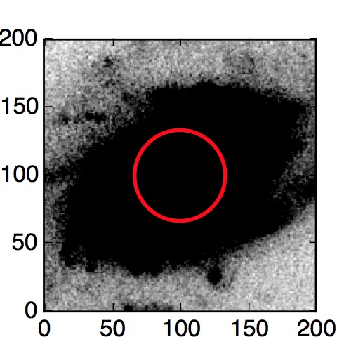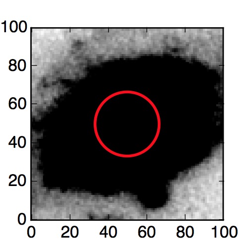 The red circle in the various panels is 1" in radius. The images are 6"x6".