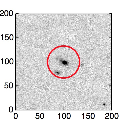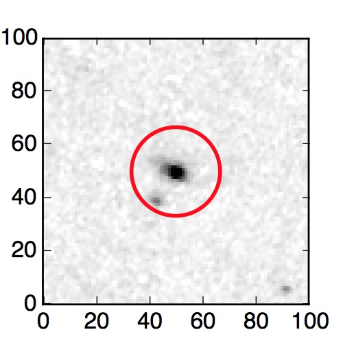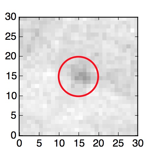 The red circle in the various panels is 1" in radius. The images are 6"x6".