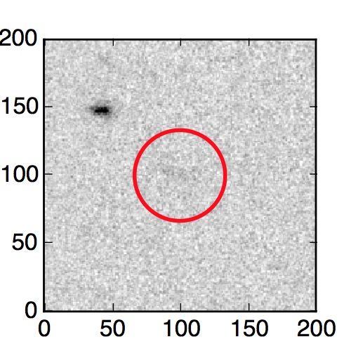 The red circle in the various panels is 1" in radius. The images are 6"x6".