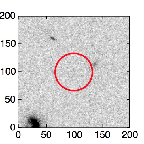 The red circle in the various panels is 1" in radius. The images are 6"x6".