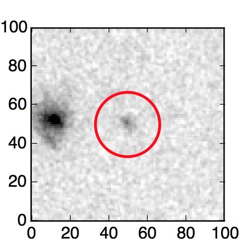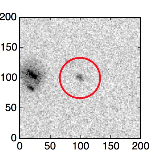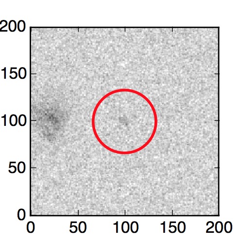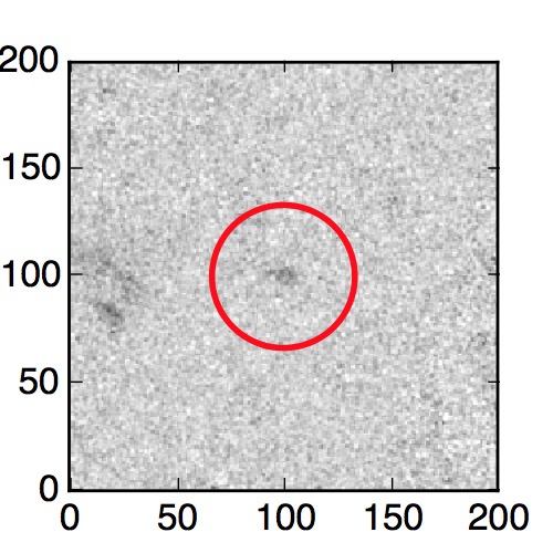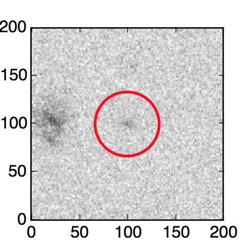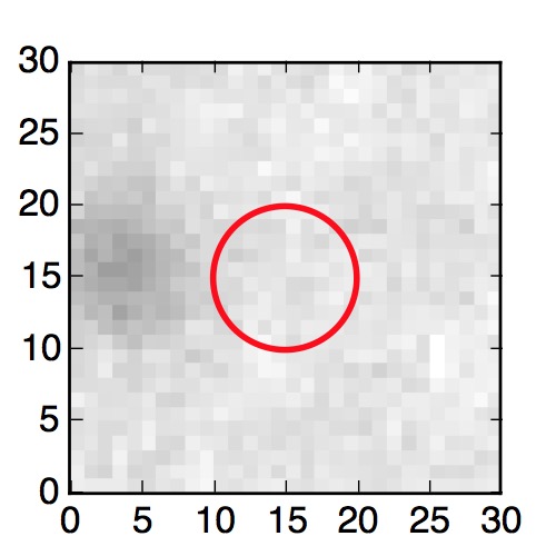 The red circle in the various panels is 1" in radius. The images are 6"x6".