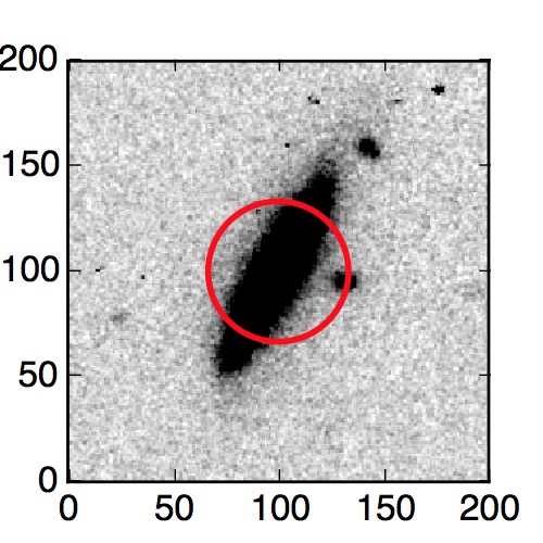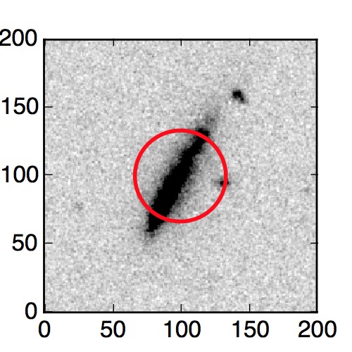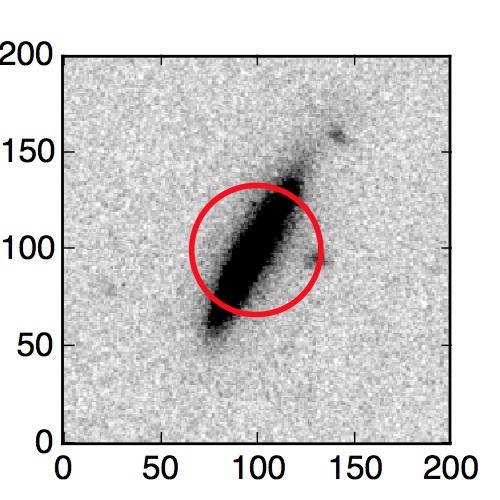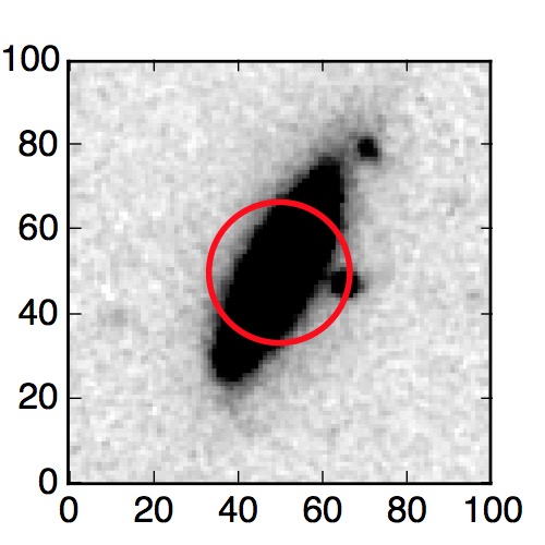 The red circle in the various panels is 1" in radius. The images are 6"x6".